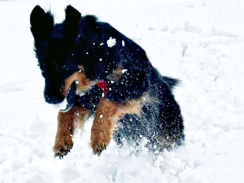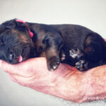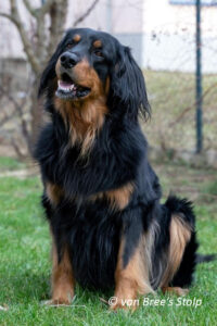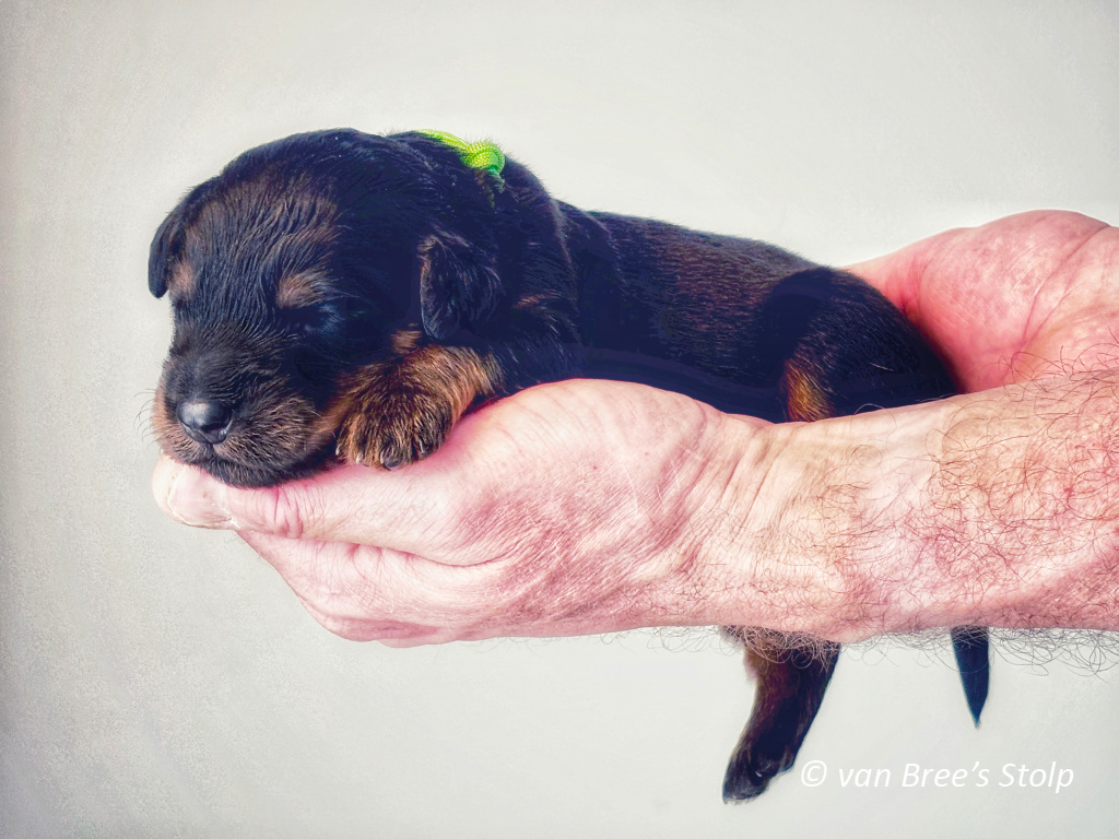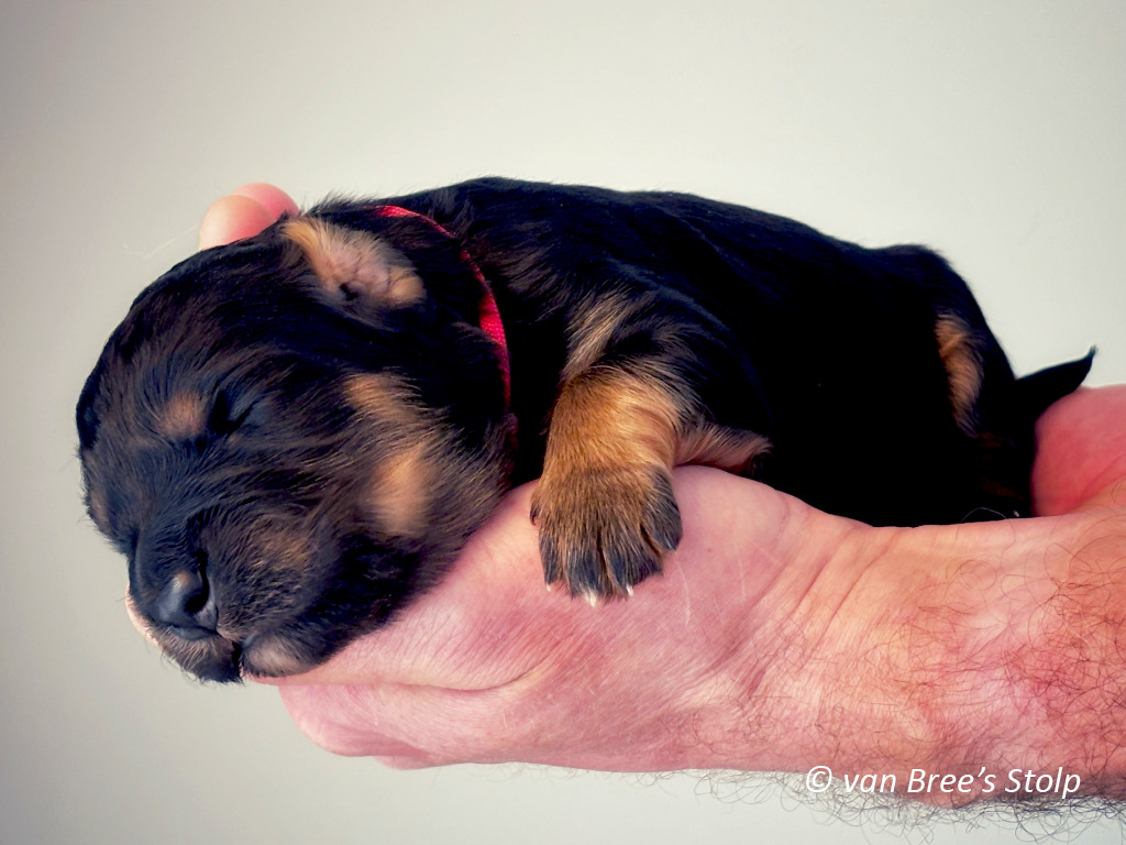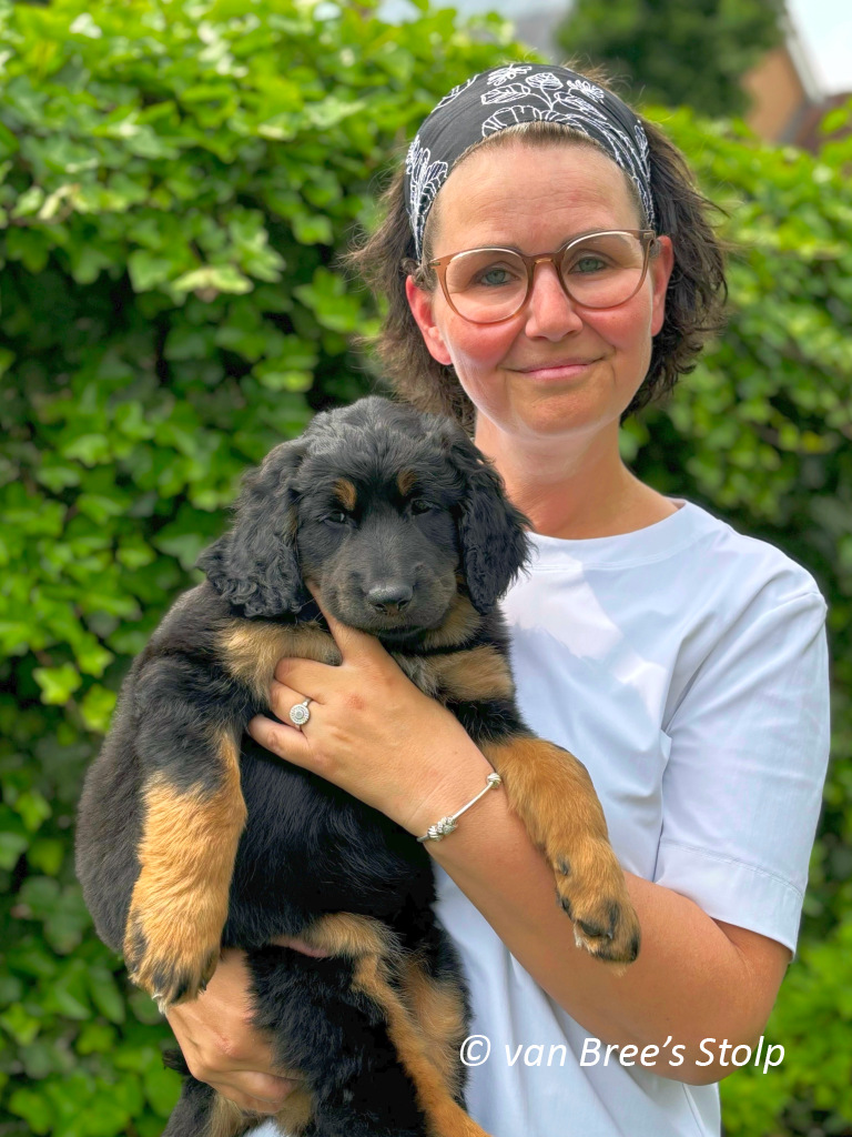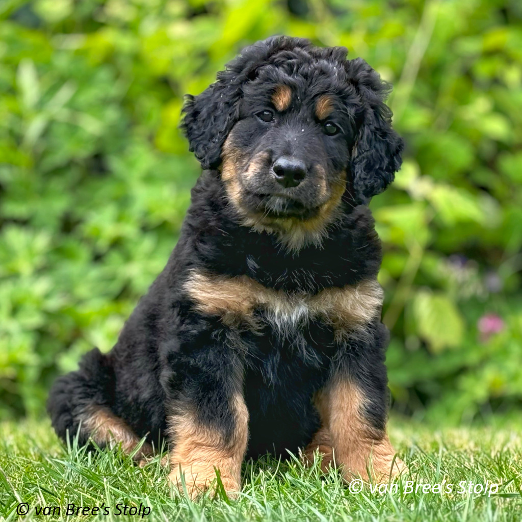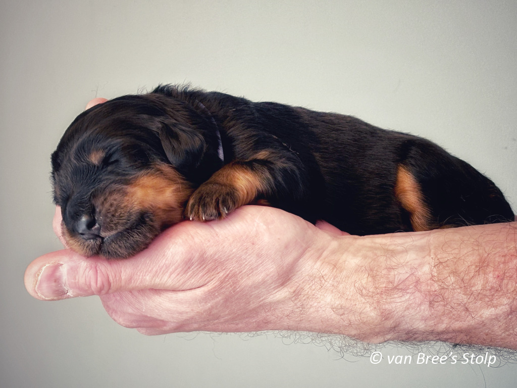 Uit deze combinatie verwachten we zwart-blonde en blonde pups.